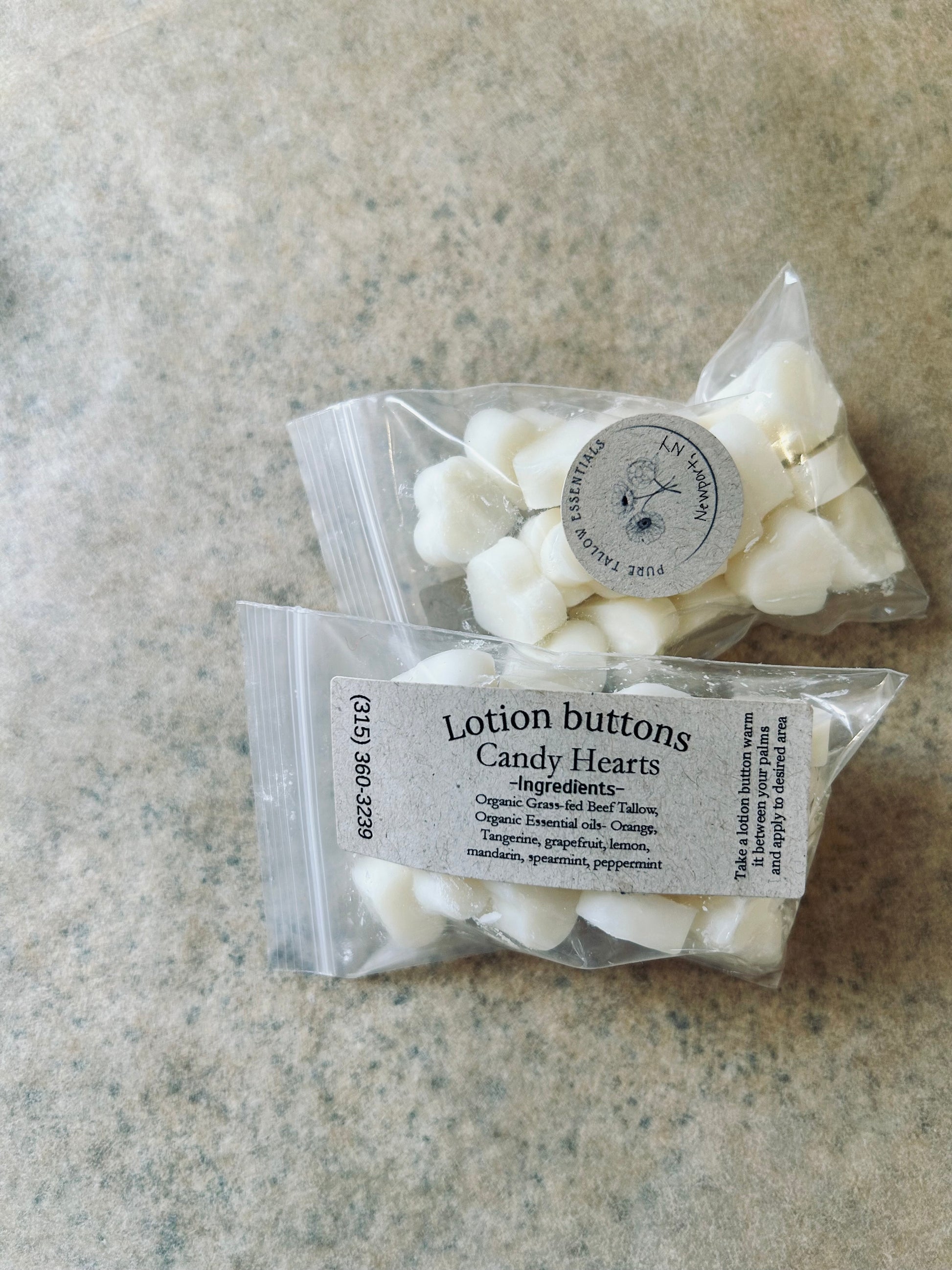 Fall in love with skin care that’s as sweet as it smells. Our Candy Hearts Tallow Lotion Buttons are handcrafted with 100% grass-fed beef tallow and a bright, joyful blend of organic essential oils: orange, grapefruit, lemon, tangerine, mandarin, spearmint, and peppermint.
